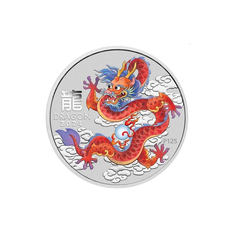 Australian Lunar Series III Red Dragon 2024 Year of the Dragon 1/2oz Silver Coloured Coin in capsule