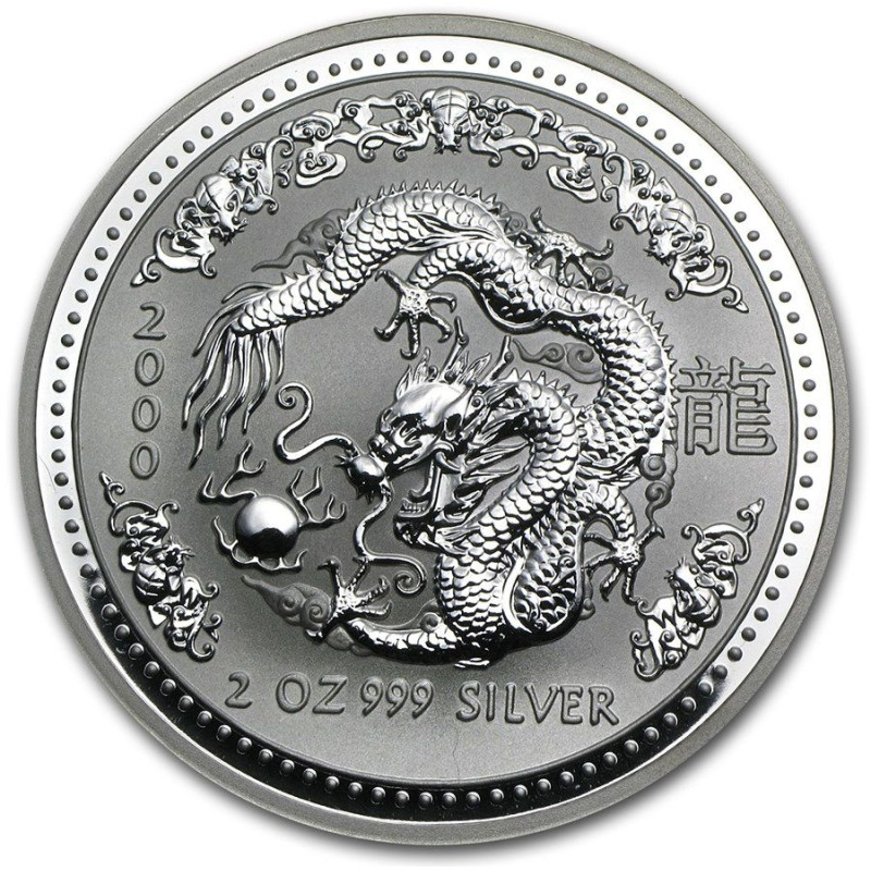PM 2 oz silver Lunar 1 DRAGON 2000 bu $2