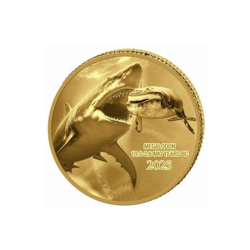 0.50 GR GOLD Prehistoric Life 2 MEGALODON 2025 bu 20FR BU