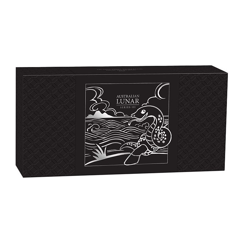 The coin’s reverse portrays a coiled snake on the ground beneath hanging leaves. Included in the design is the Chinese character for ‘snake’, the inscription ‘SNAKE 2025’, and The Perth Mint’s ‘P’ mintmark.