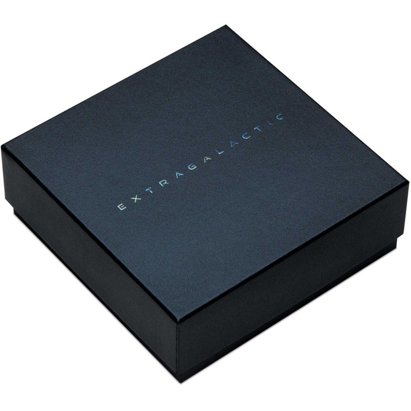 Accompanied by a numbered certificate of authenticity, the coin comes packaged in a circular wooden collector case, elegantly embossed with the word 'EXTRAGALACTIC' on the lid. Inside, the coin is nestled in velvet-lined material with cosmic-inspired foiling for an added touch of sophistication.