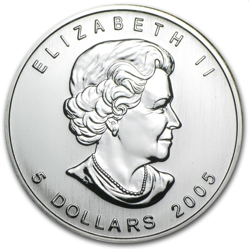 Canada 1 oz silver MAPLE LEAF 2005 $5 bu