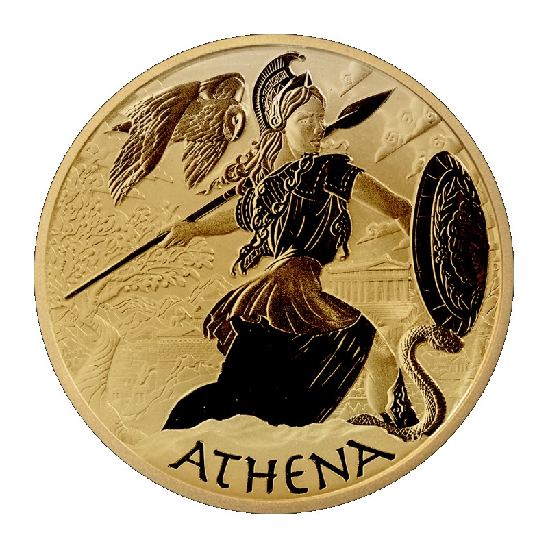 PM 1 oz GOLD GODS OF OLYMPUS 2022 ATHENA BU $100 MINTAGE 100